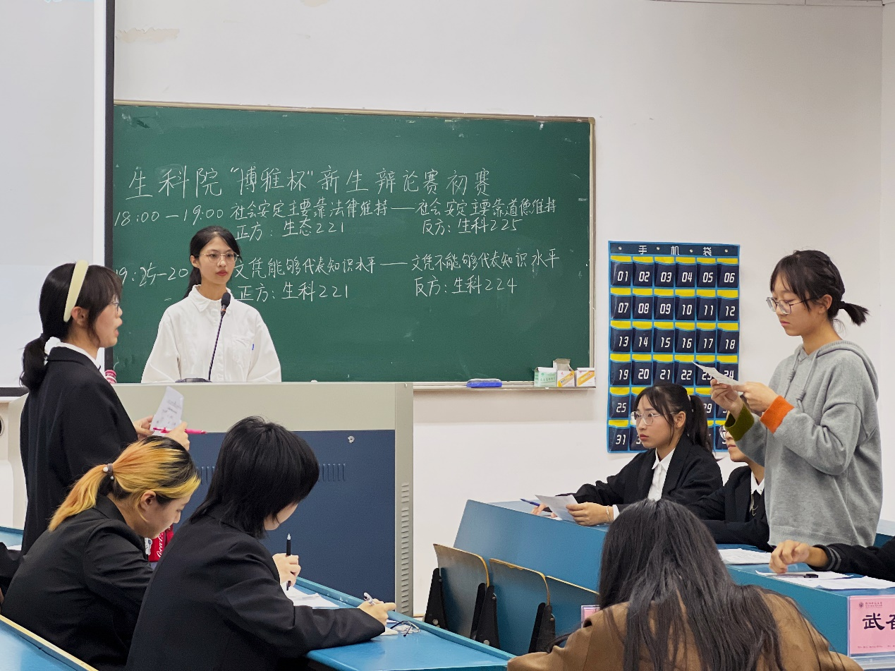 2022年10月22日晚,生科院“博雅杯”新生辩论赛在下沙校区举行。辩论赛由生科院团委学生联合会主办,学术科技部承办,共八个班级参赛,由往届六位优秀辩手担任评委。