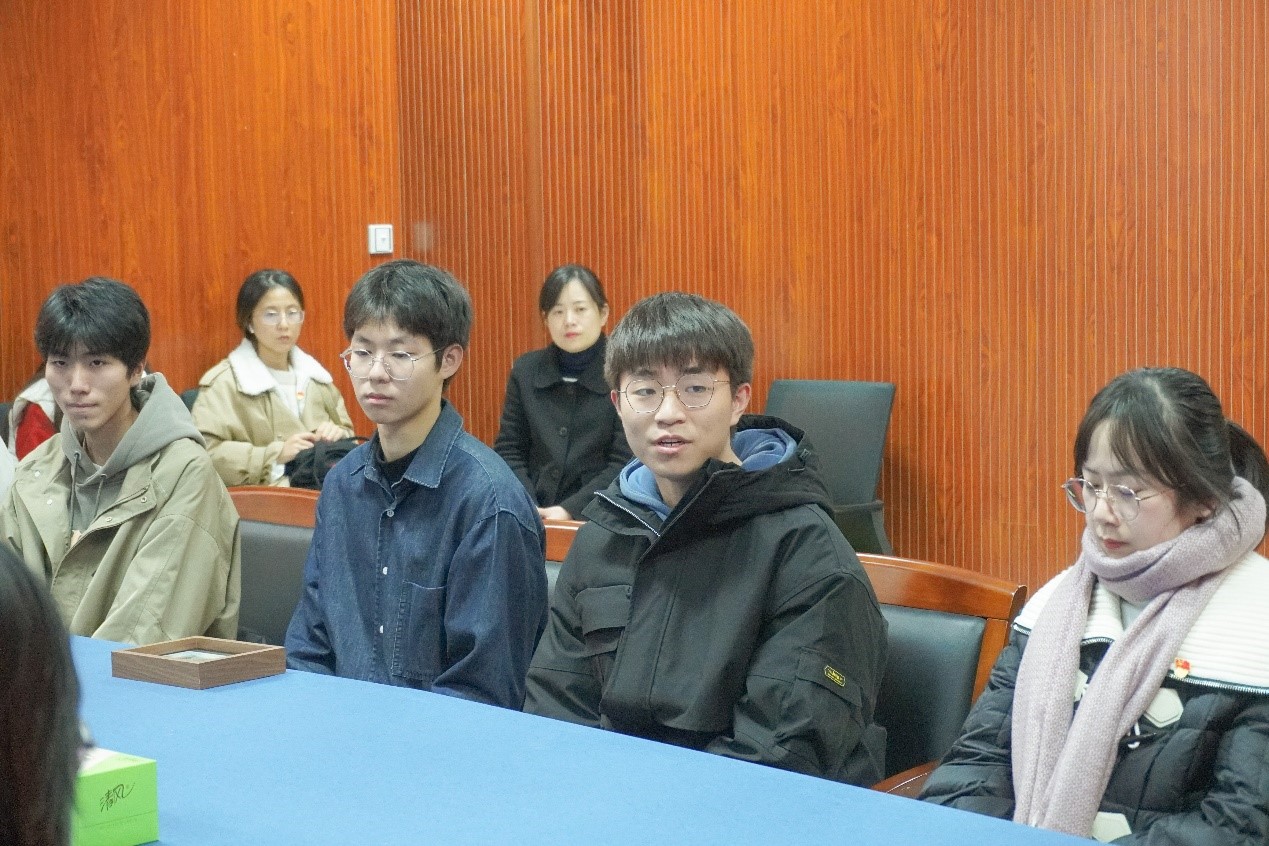 听到同学们的奋斗情况和取得的成绩,他感到十分欣慰:“听同学们谈论理想,交流学习生活,仿佛自己也回到了刚入大学的时光。”“从博士到硕士的纵向组成,从论文到专利的成绩取得,我深深地感受到你们积极向上的精神状态和学院浓厚的学术氛围。”他向同学们赠送了党的二十大相关书籍,介绍了相关情况,要求同学们结合自身成长经历和学习体悟,认真学习党的二十大精神,希望同学们以邓稼先、匡廷云院士为榜样,为理想奋斗,争做“立大志、明大德、成大才、担大任”的新时代大学生。