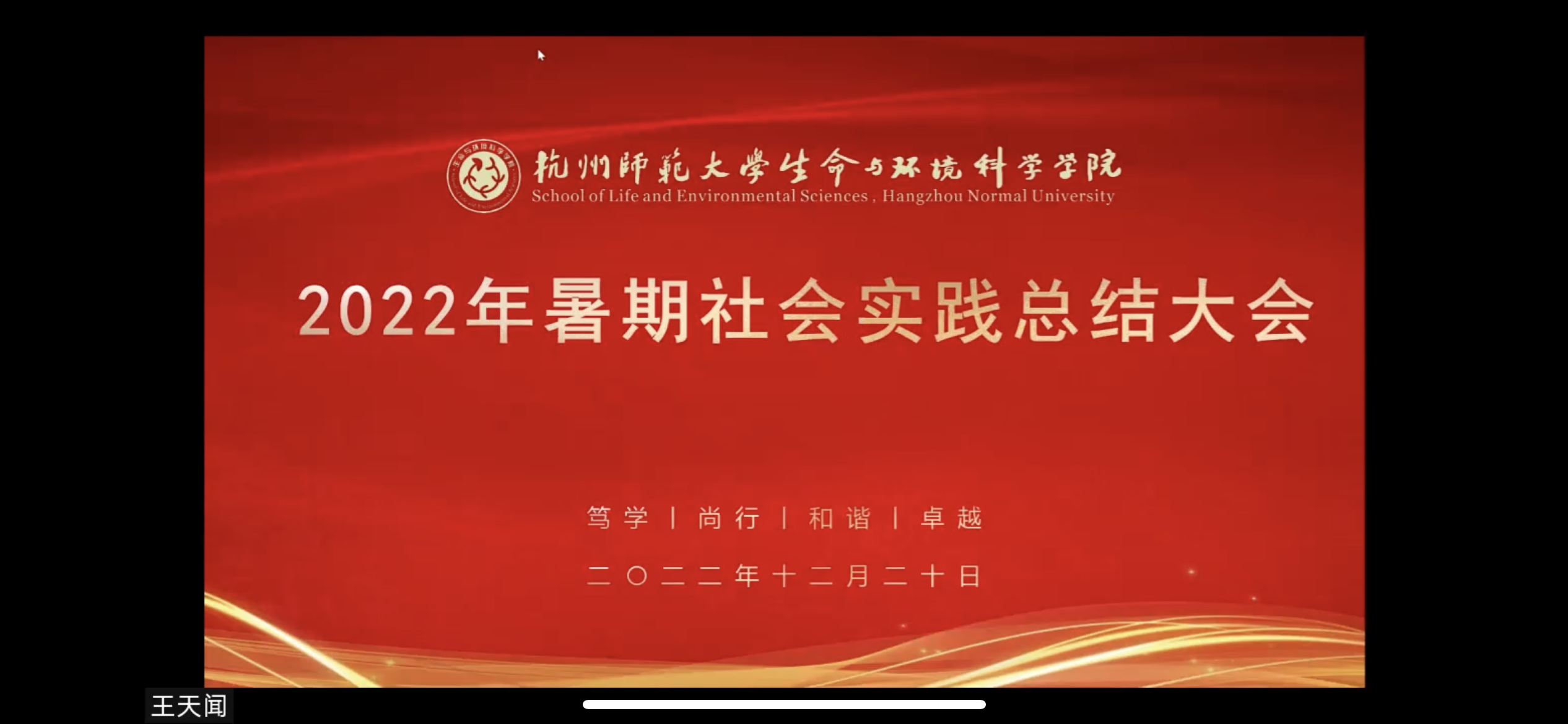 为深入学习和贯彻党的二十大精神,鼓舞广大青年学生在奉献中成长,在实践中锻炼。12月20日,生科院2022年暑期社会实践总结大会钉钉线上直播顺利召开。外联实践部王天闻同学总结本次暑假社会实践的开展情况。19支团队以迎接党的二十大为主线,围绕疫情防控、返乡实践、献礼二十大、五水共治、环境湿地保护、枫桥经验等等热点话题,以线上问卷、海报、微推、视频、路人采访等多种方式开展社会实践。另有10名同学开展个人社会实践,以线下为主,返回家乡开展志愿活动、宣传活动、协乡抗疫、民意调查、助力振兴等实践。本次暑假共有162名同学参加,实践紧扣时代主题,关心社会热点,范围广,服务对象多,服务农村、社区、学校等地的民众共计500余人次。2022年暑期社会实践取得圆满成功。