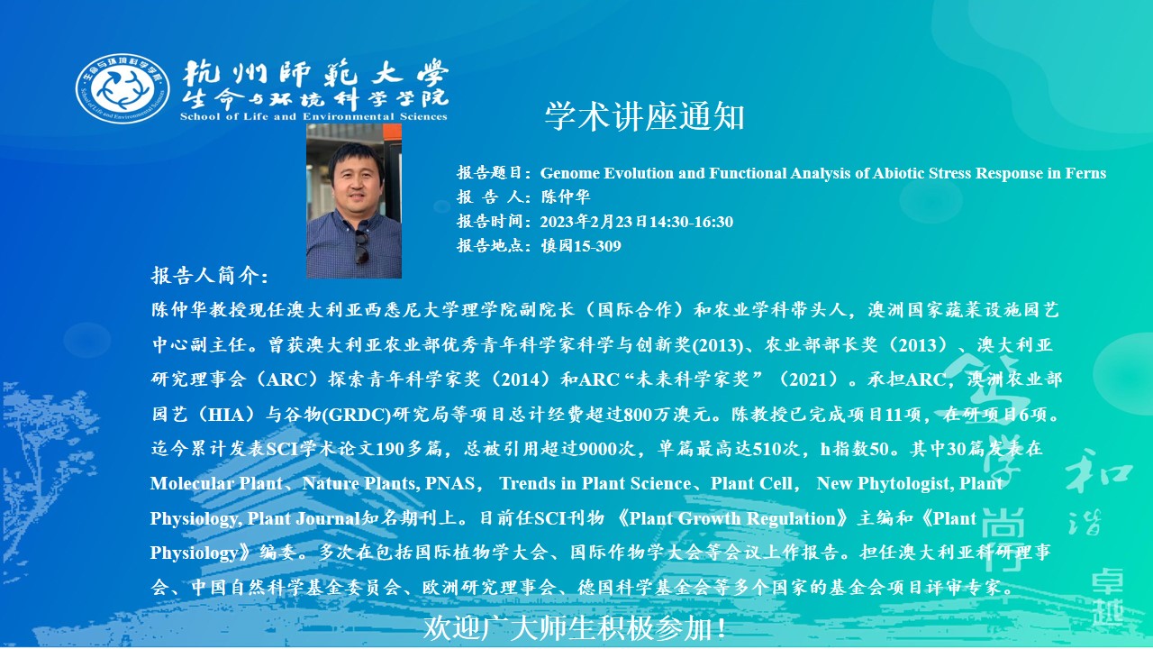 陈仲华-Genome Evolution and Functional Analysis of Abiotic Stress Response in Ferns