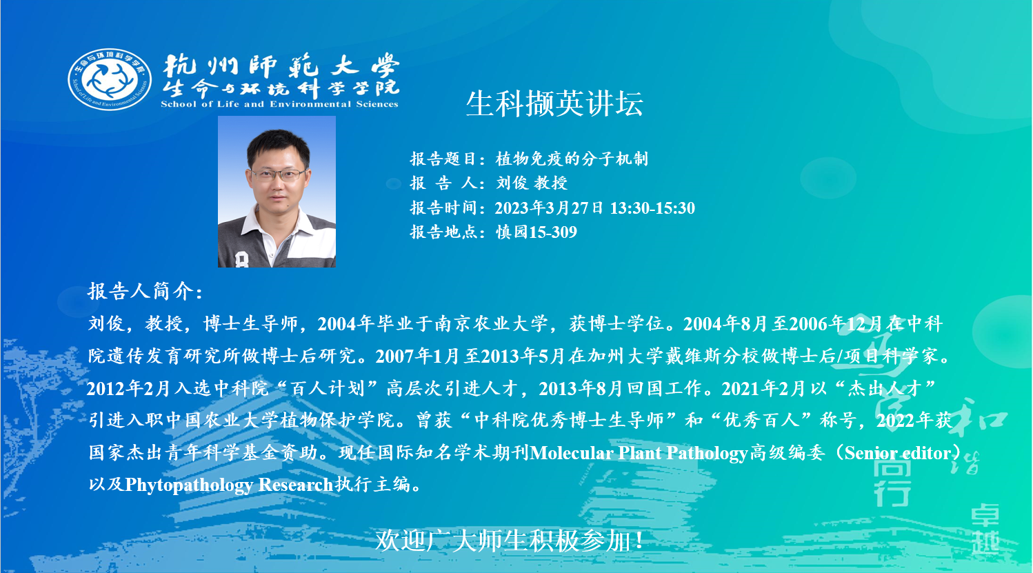 生科撷英讲坛-植物免疫的分子机制