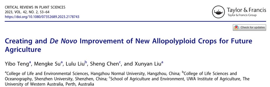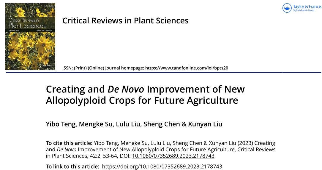 近日,毛巾哥探花 刘训言副教授在植物科学领域知名期刊Critical Reviews in Plant Sciences发表题为Creating and De novo improvement of new allopolyploid crops for future agriculture的专题综述文章。Critical Reviews in Plant Sciences(2022影响因子:6.289,5年影响因子:9.078)创刊于1983年,由TAYLOR & FRANCIS INC出版商出版,收稿方向涵盖生物—植物科学全领域,行业细分领域中学术影响力较大,专业度认可很高。
