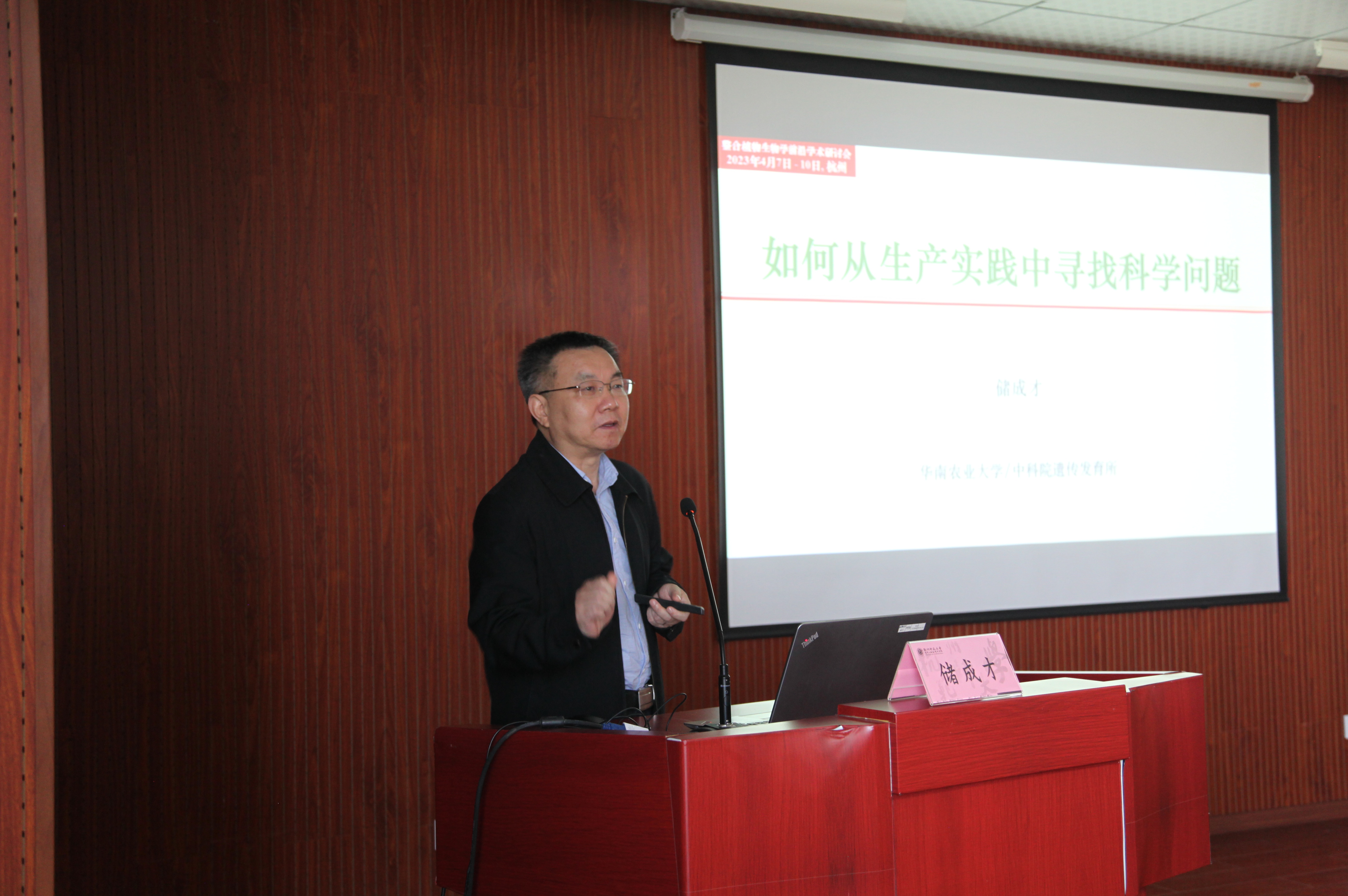 国家杰出青年基金获得者、华南农业大学农学院院长储成才教授结合自己的研究经历,做了《如何从农业生产实践中寻找科学问题》的报告,他以水稻绿色革命引入,详细介绍了团队在提高水稻氮素利用率的突破性工作,在氮高效利用水稻品种改良方面为育种家提供了新的方案,忠告青年科研人员要从农业生产中的实际问题出发,找到解决方案并应用到生产实践中。
