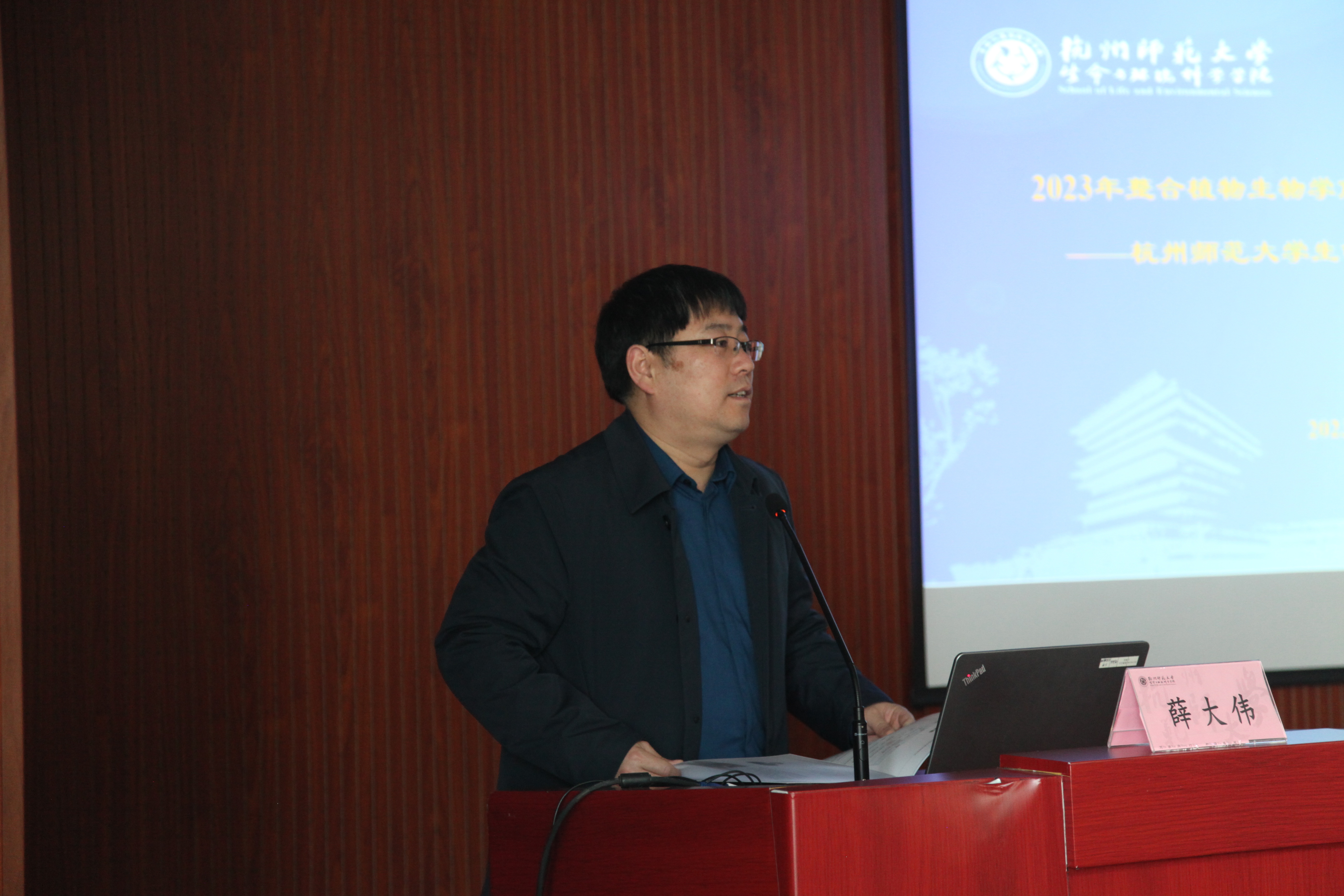 杭师大生科院党委书记张立明主持开幕式,介绍了杭师大、生科院的发展历史、师资队伍、学科建设等情况,并向与会师生简单介绍了各位专家。