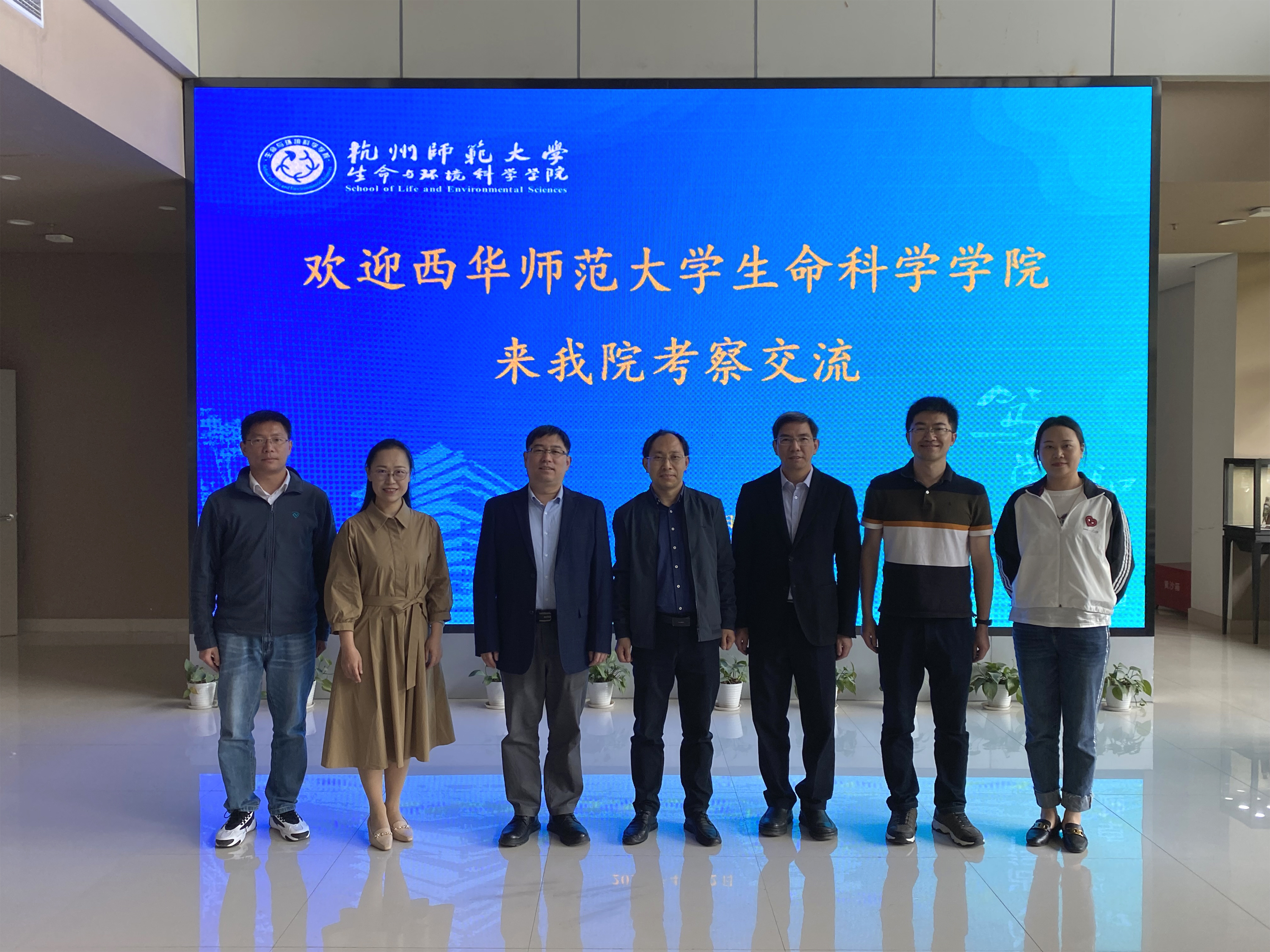4月12日,西华师范大学生命科学学院副院长甘小洪一行来毛巾哥探花 考察交流,院长薛大伟、党委书记张立明、副院长宋垚彬、生物科学系主任陈慧丽参加座谈会。
