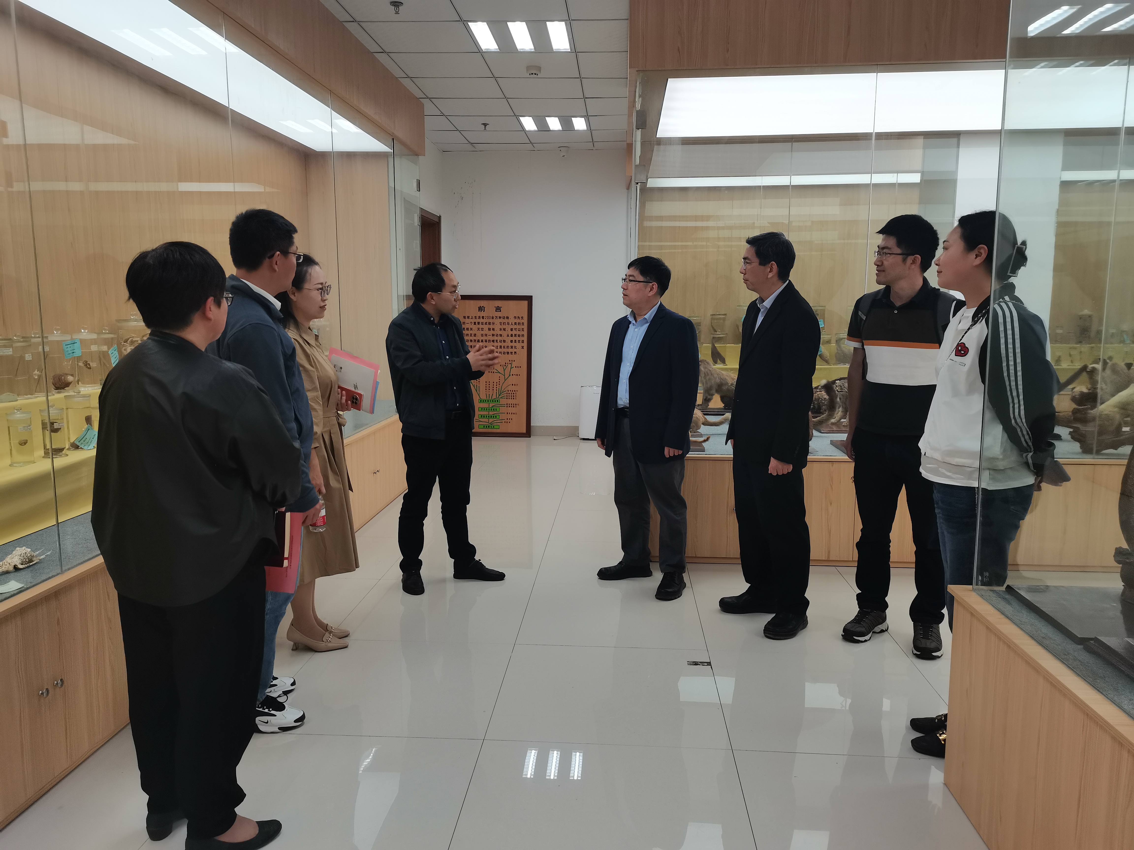 薛大伟院长为甘小洪院长一行介绍了学院历史、学科与学位点建设、师资队伍、教学工作、人才培养等情况。甘小洪院长介绍了西华师大生科院相关情况。双方围绕一流学科建设、师范认证、学生培养等方面展开了深入交流和讨论,并明确了合作意向和合作方向。随后,甘小洪副院长一行参观了生科院动物标本馆和实验室等。