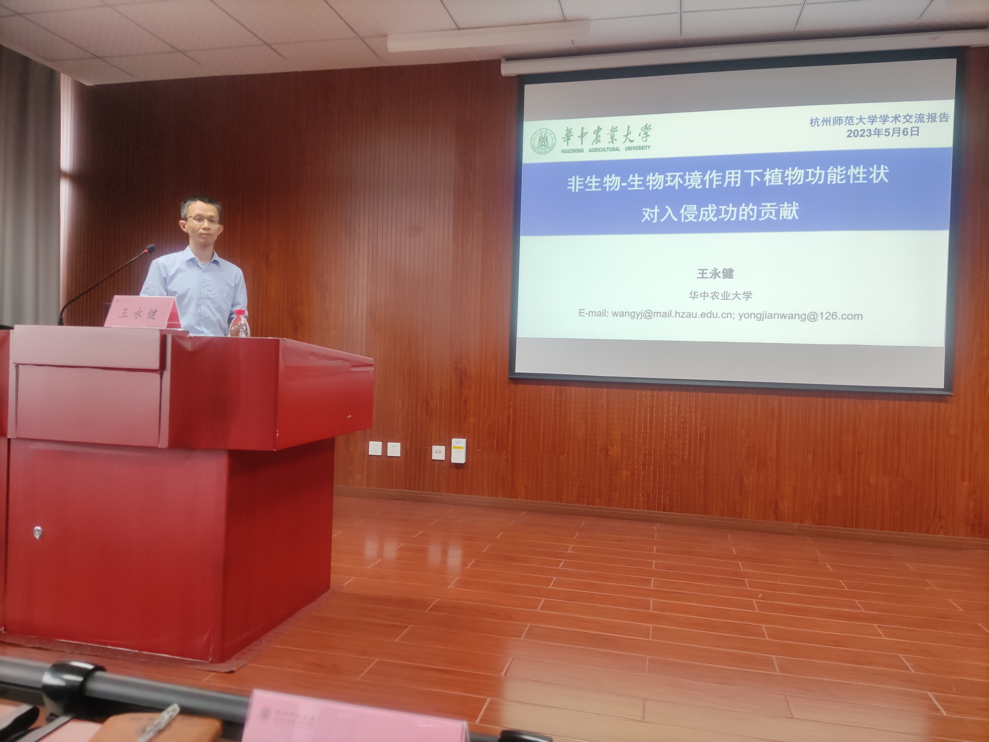 5月6日下午,毛巾哥探花 在慎园15-309报告厅举行了2023年第15期生科撷英讲坛,国家级青年人才计划入选者、狮山硕彦计划拔尖人才A类、生物入侵与防治团队负责人王永健教授,应邀来毛巾哥探花 为师生们做了题为“非生物-生物环境作用下植物功能性状对入侵成功的贡献”的学术交流报告,生态学学科的教师、研究生和本科生踊跃参加。