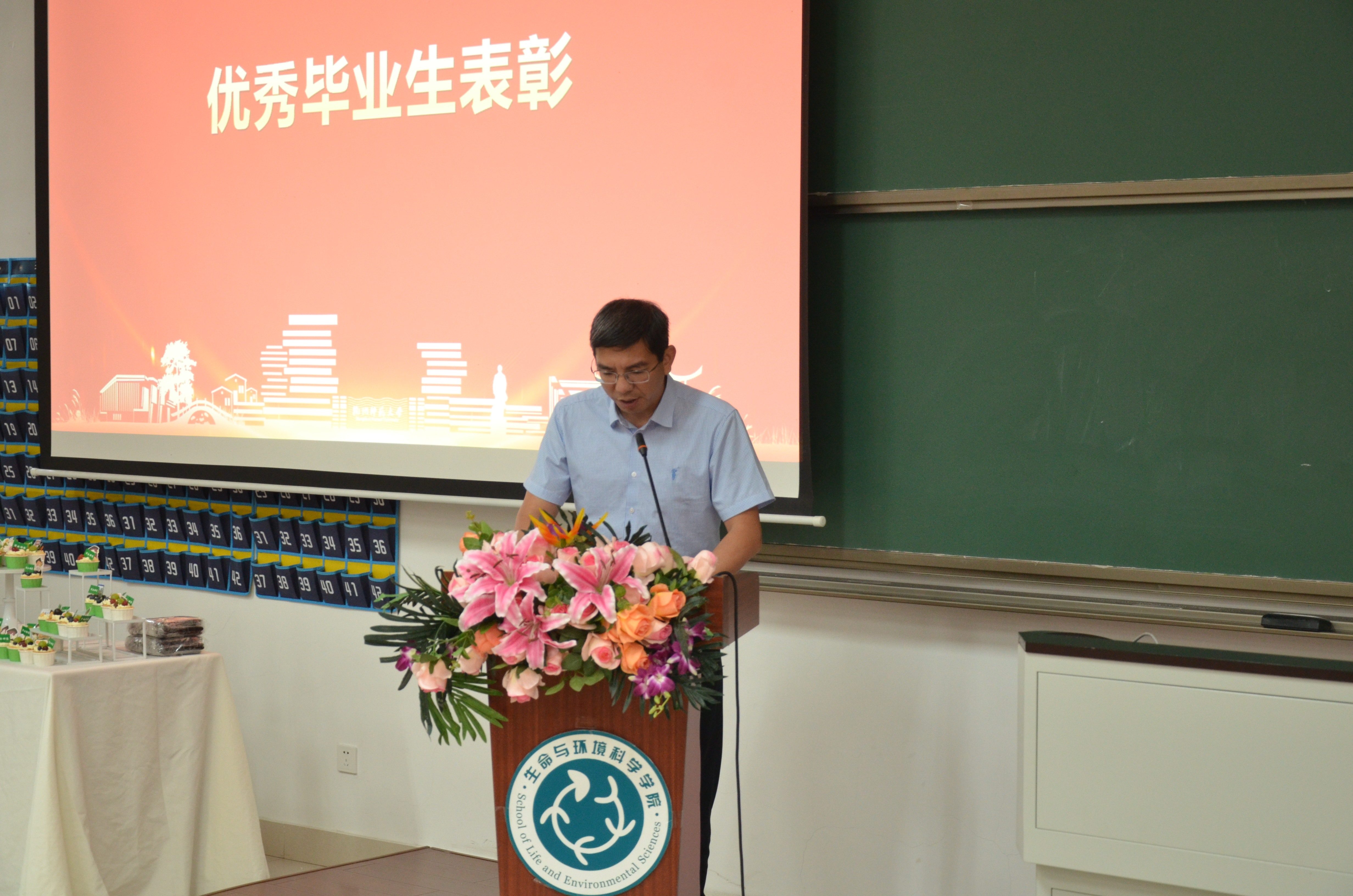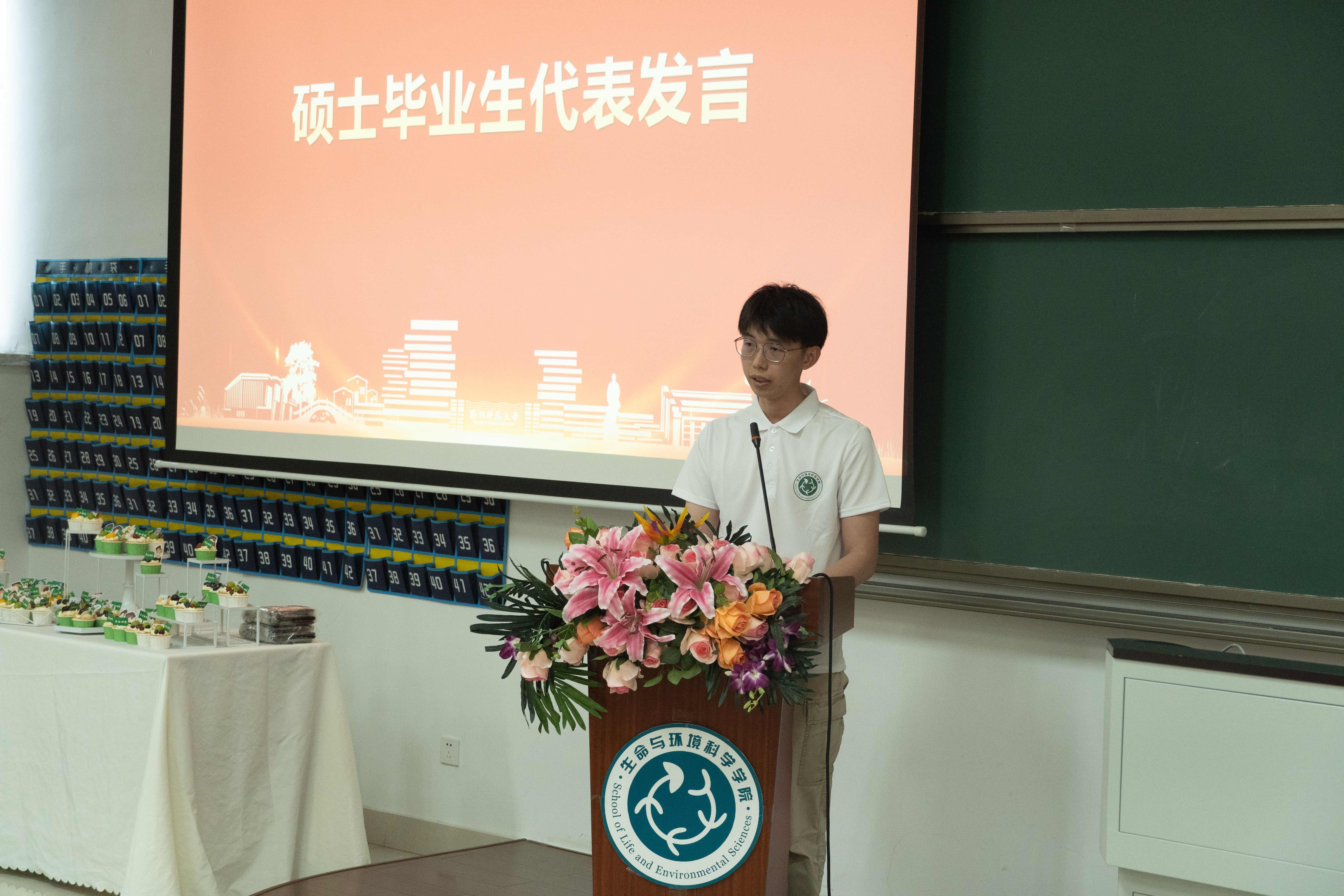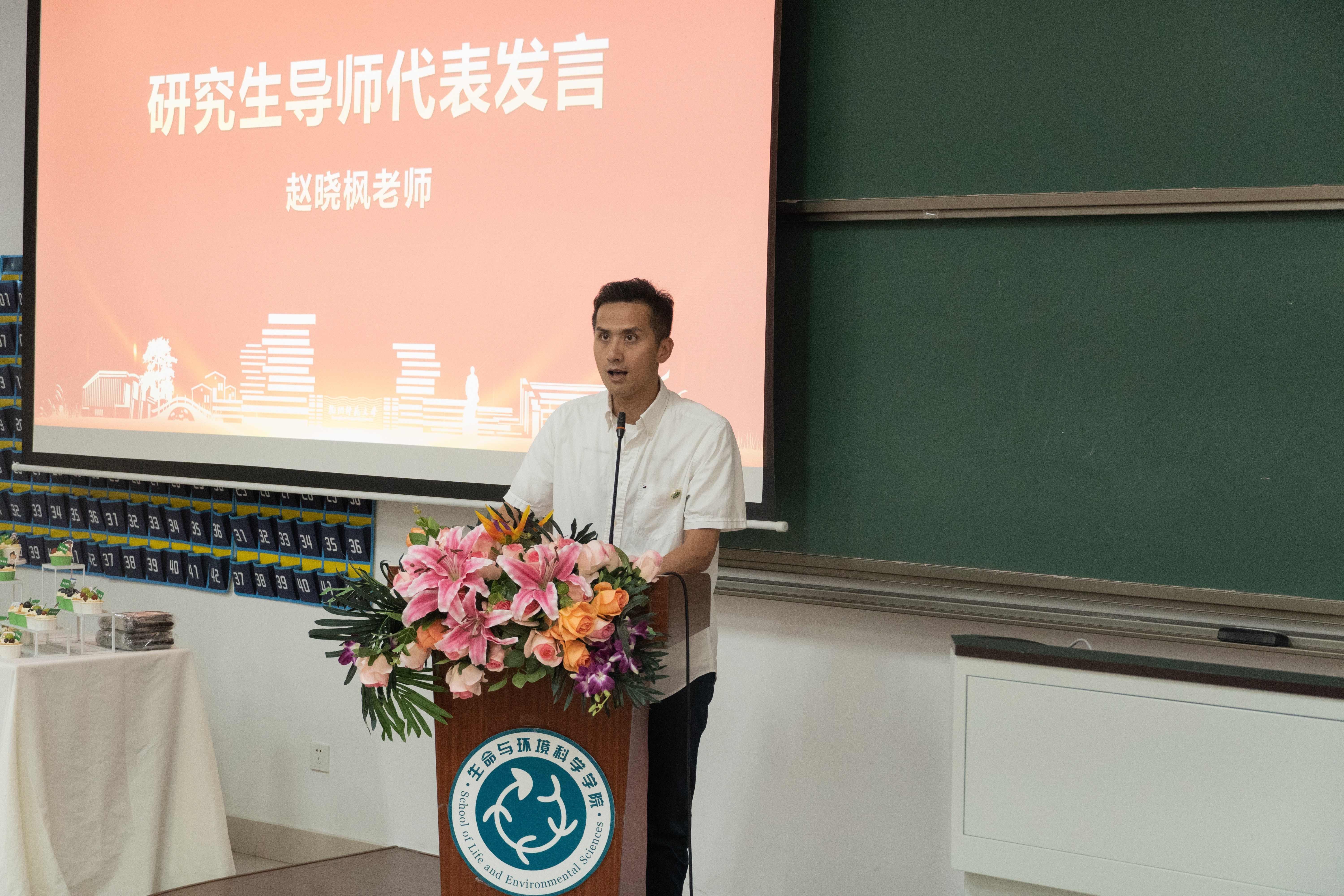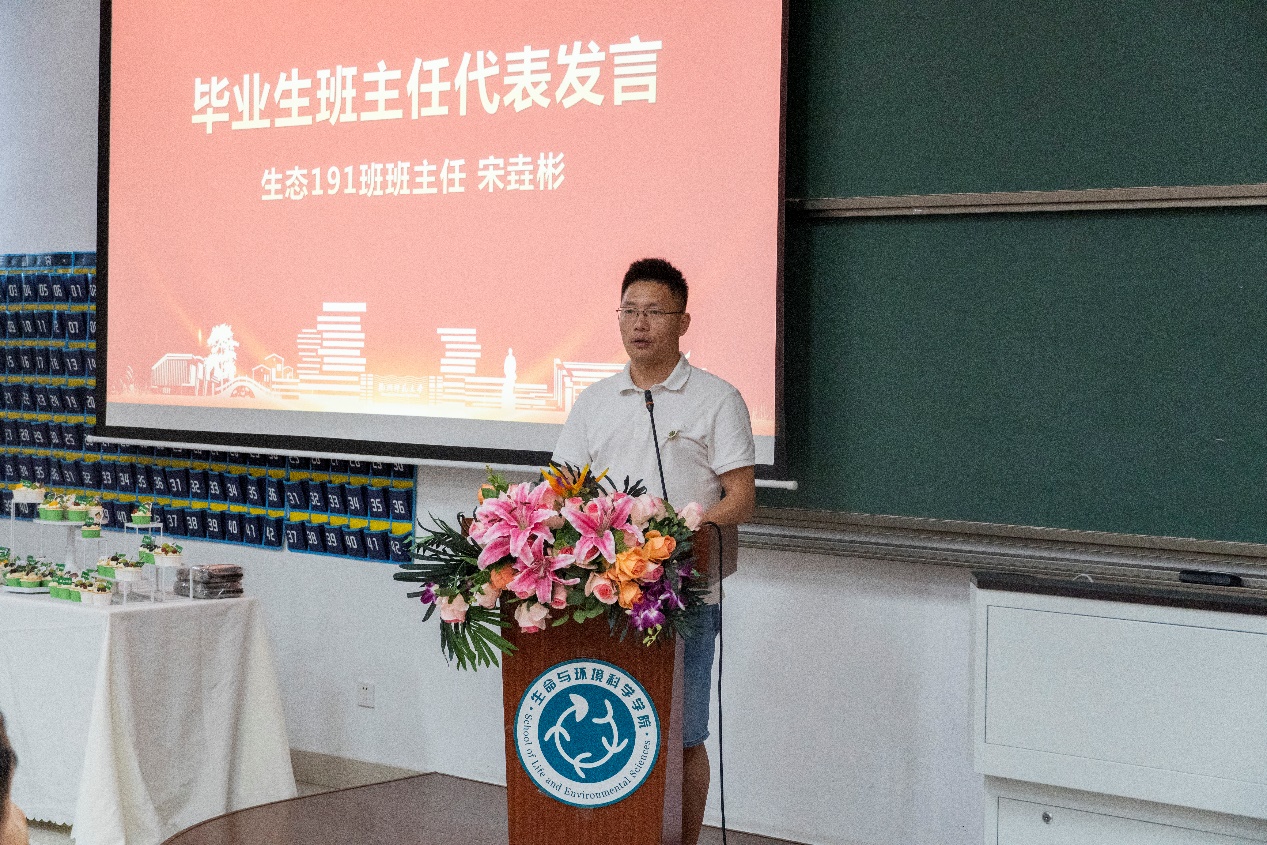 生态191班班主任、副院长宋垚彬代表毕业班班主任发言,对即将开启人生新征程的毕业生们提出热爱学习、崇尚科学,懂得感恩、懂得释怀、懂得取舍的希望。