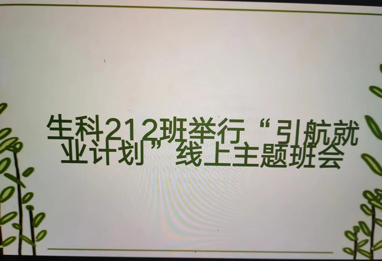 2023年9月10日,生科212班线上召开了关于“大学生就业引航计划”活动。活动的主要内容为破除学生传统观念,培养正确的就业意识,改变学生对于学历的认识。学历只是一个人的学习经历,大学生进人高校学习,如果按期完成专业课程,并通过考核,将会取得相应专业的学历证书。只有以正确的择业观、就业观引导就业预期,才能科学把握就业方向和职业日标,为将来走上工作岗位后摆正工作态度、提升工作业绩打下坚实基础,为深人学习宣传贵彻觉的二十大精神,以及中央经济工作会议提出的“把促进青年特别是高校毕业生就业工作撰在更加突出的位置”的要求,引领大学生立足实际,找准定位,树立理性、平实的择业观、就业观,主动到基层-线“自找苦吃”、踏实奋斗、成长成才。学院团委组织开展了以“大学生就业引航计划”为主题的团日活动,拓宽了学生们的视野,提高了学生们的技能,使大家对未来规划有了更加明晰的思路。