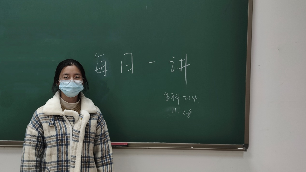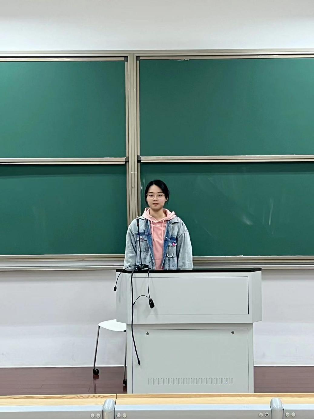 2023年11月30日,生科221毛淇萱在慎1-107做《亚运健儿,勇立潮头》的演讲。