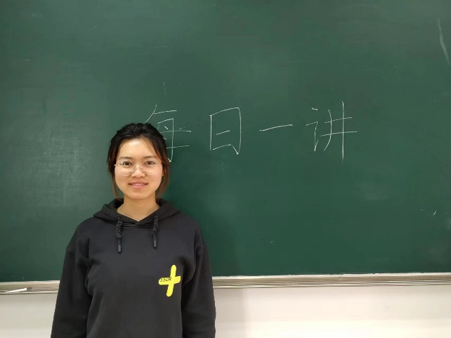 2023年11月29日,谢烨欣在慎园2号楼205进行“越拼才越‘顺’,初心‘泳’不变”的每日一讲演讲。