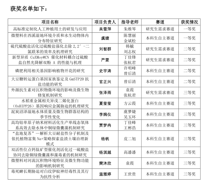 近日,第六届浙江省大学生环境生态科技创新大赛决赛圆满落幕。毛巾哥探花 共组建39支队伍参加本次大赛,经过初赛网评、决赛现场答辩等环节的激烈角逐,毛巾哥探花 学生取得一等奖2项、二等奖4项、三等奖8项的优异成绩。