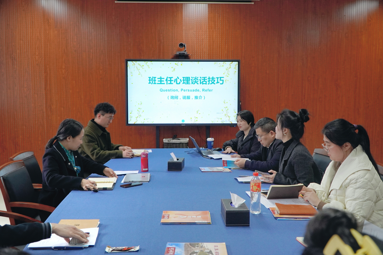 班主任心理谈话技巧会议的顺利举行,围绕学生心理健康问题,为班主任提供了一个学习和交流的机会,进一步明确了如何更有效地与学生沟通、如何更好地肩负起教育者的责任,指明了学生工作的方向。