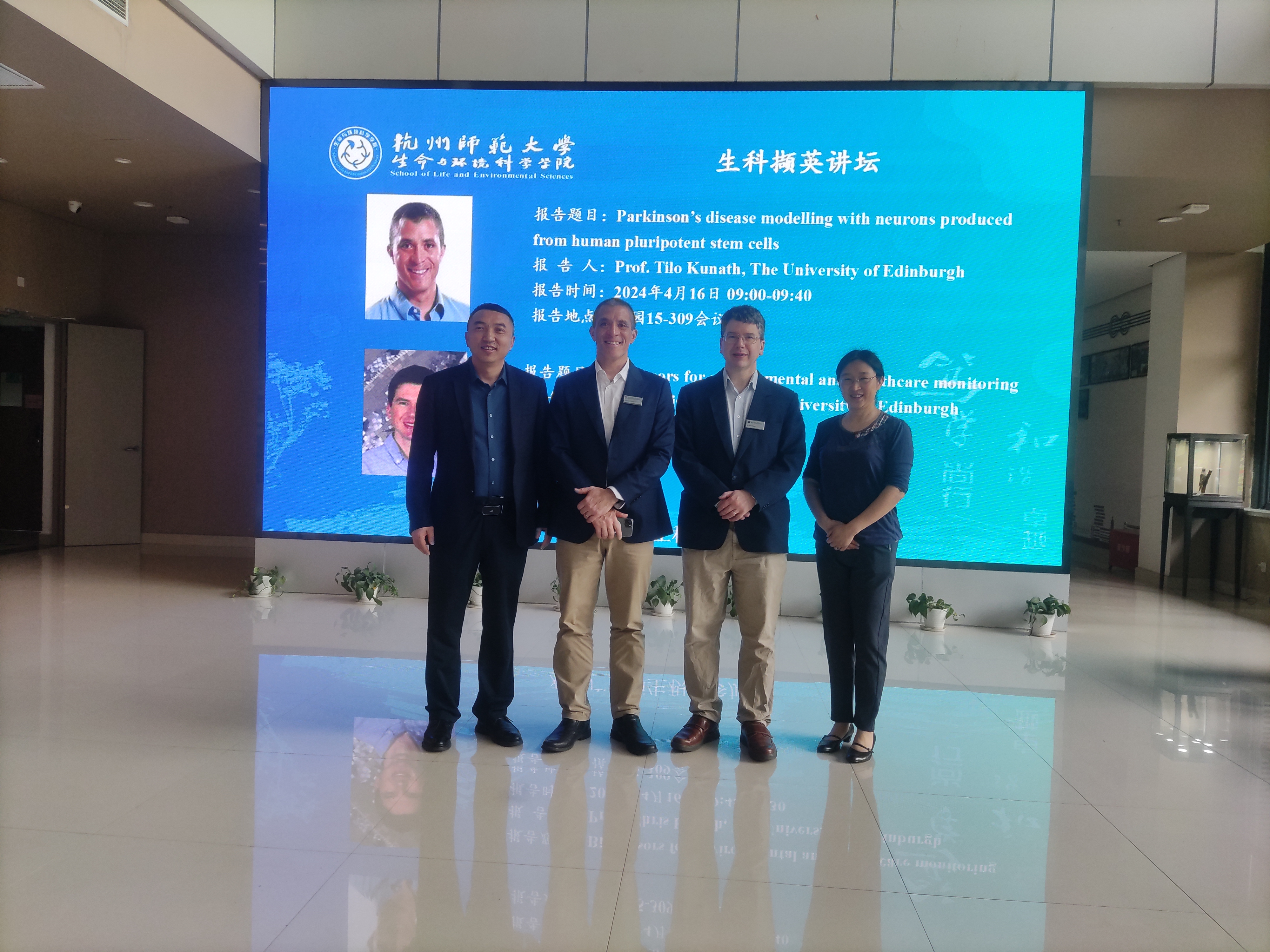 2024年4月16日上午,毛巾哥探花 在慎园15-309报告厅举行了2024年第46-47期生科撷英讲坛,英国爱丁堡大学Prof. Tilo Kunath和Prof. Chris French应邀来毛巾哥探花 为师生们分别作了题为“Parkinson’s disease modelling with neurons produced from human pluripotent stem cells”和“Biosensors for environmental and healthcare monitoring”的学术报告,报告前,于彦春副院长与Prof. Tilo Kunath、Prof. Chris French、胡玉华教育技术主管进行了座谈会。随后于彦春副院长主持报告会,生物学教师、研究生和本科生积极参加。