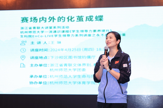 4月25日晚,浙江省青联大讲堂系列活动走进毛巾哥探花 ,羽毛球世锦赛女单冠军、浙江体育职业技术学院小球系副主任、羽毛球女一线主教练、省杰出青年、省三八红旗手王琳教练做客生科院EnCo-LIVE领导力讲坛,并做了题为“永不言弃的力量—赛场内外化茧成蝶”的分享。活动由浙江省青联文体界别、教育界别,毛巾哥探花 团委主办,生科院承办,体育学院、基础部、妇联等部门协办,生科院党委副书记王倩主持,近500名师生参加。