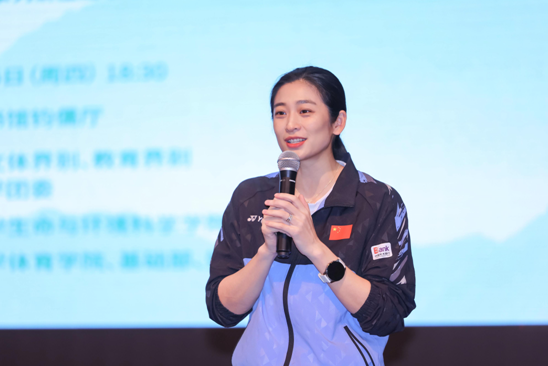 王琳结合个人成长,介绍了她出身羽毛球世家、继承父母衣钵成为羽毛球运动员、获得世锦赛冠军为国争光,并在退役后成为教练员培养出陈雨菲、黄雅琼等世界冠军,成为优秀教练员,以及当前在行政岗位发光发热的经历。