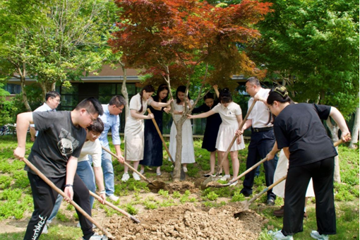 毕业情意浓,共植纪念树。5月20日上午,生科院2024届毕业生植树纪念活动在仓前校区慎园15号楼前举行。生科院党政领导班子、辅导员与2024届毕业生代表共同种下充满希望与祝福的枫树。