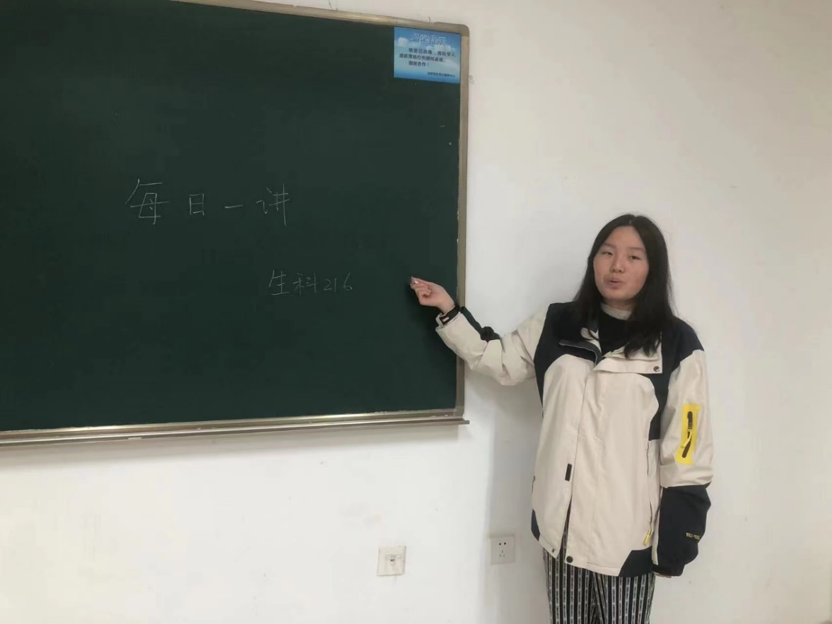 5月7日晚,生物科学(师范)225班的同学们于慎园1号楼206教室开展了“每日一讲”活动,本次主讲人为杨钰钶同学,她的演讲题目为“传承五四薪火,奏响青春华章”。