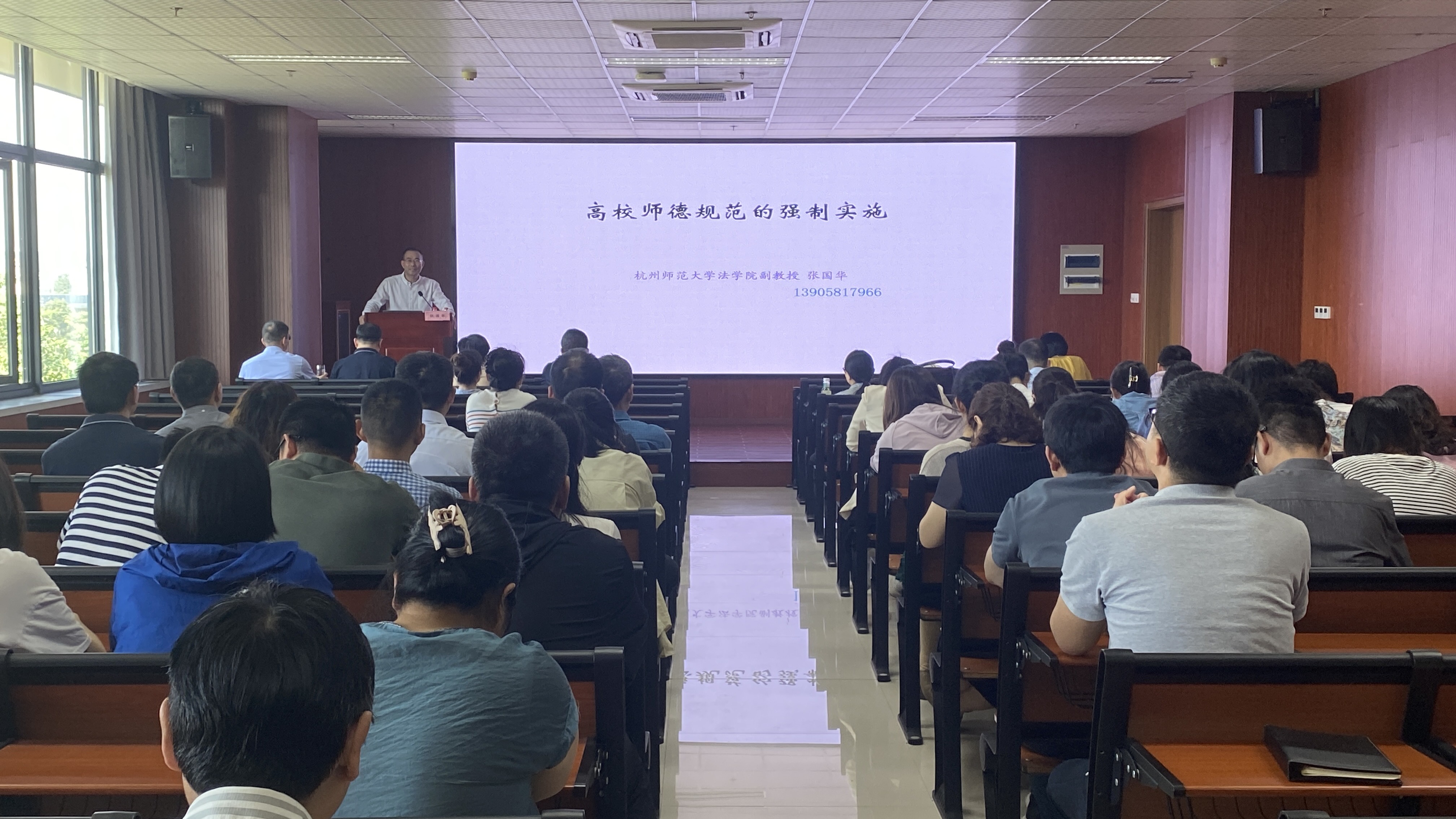 5月29日下午,生科院召开教职工大会,进行高校师德规范集体培训,培训邀请毛巾哥探花 法学院副教授张国华进行题为《高校师德规范的强制实施》的主题讲座。