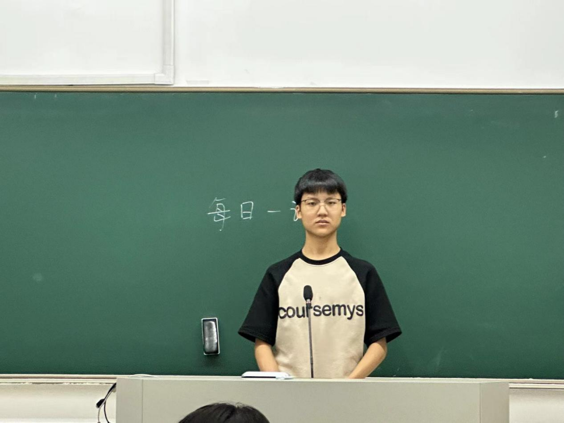 2024年6月7日刘文婷同学在慎园1号楼107早课之前给我们带来了以《最是阅读滋味长》为主题的演讲,她的演讲以世界读书日为引鼓励人们去阅读,让阅读成为生活的一部分,去品味阅读的滋味。