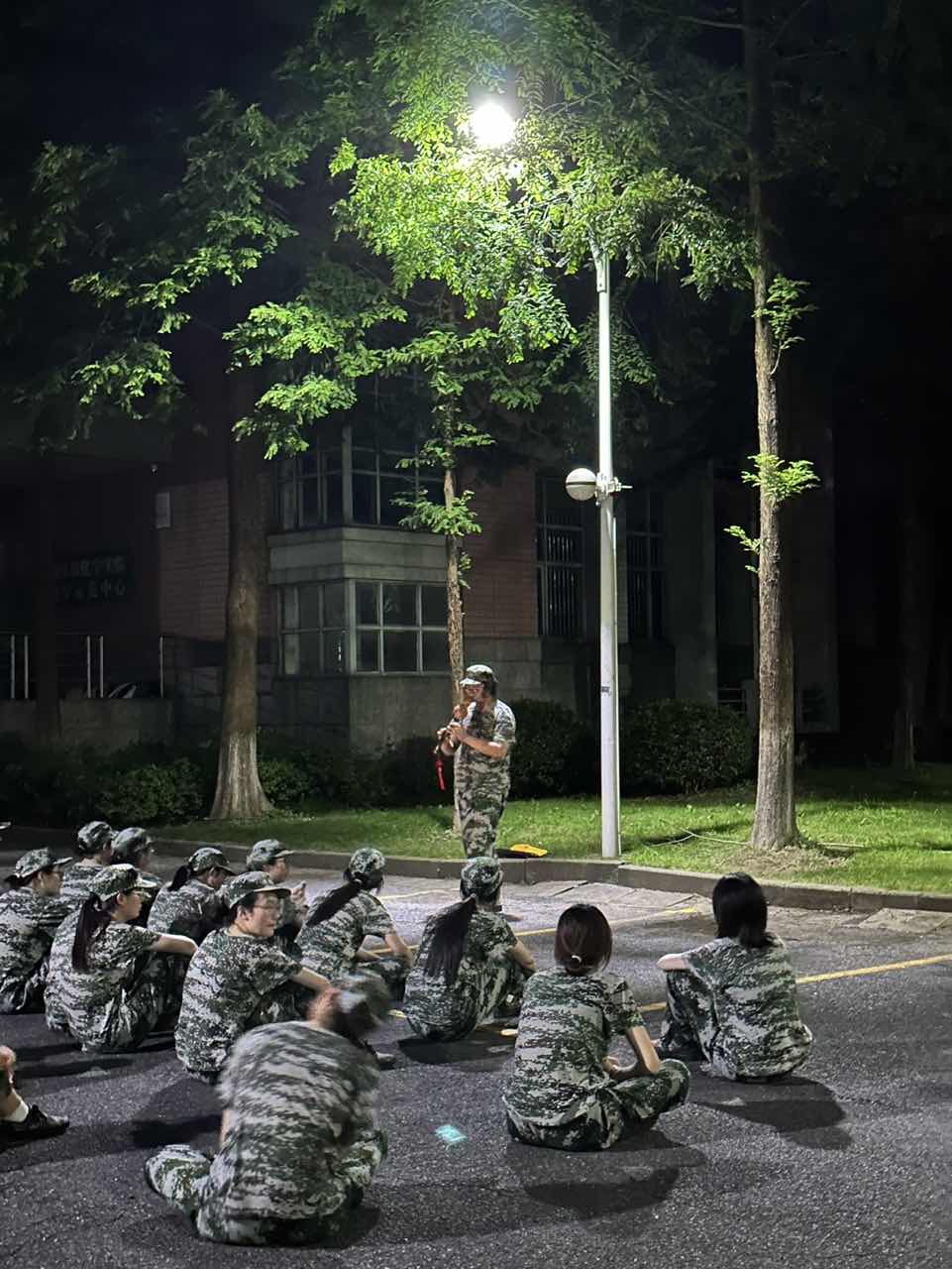 夜幕低垂,星辰点点,当大多数人都已沉浸在宁静的夜晚之时,我们却迎来了军训中别样的一课——学习军体拳。不同于白日的炽热与喧嚣,夜晚的军训场上多了一份静谧与神秘,但我们的热情却丝毫未减。