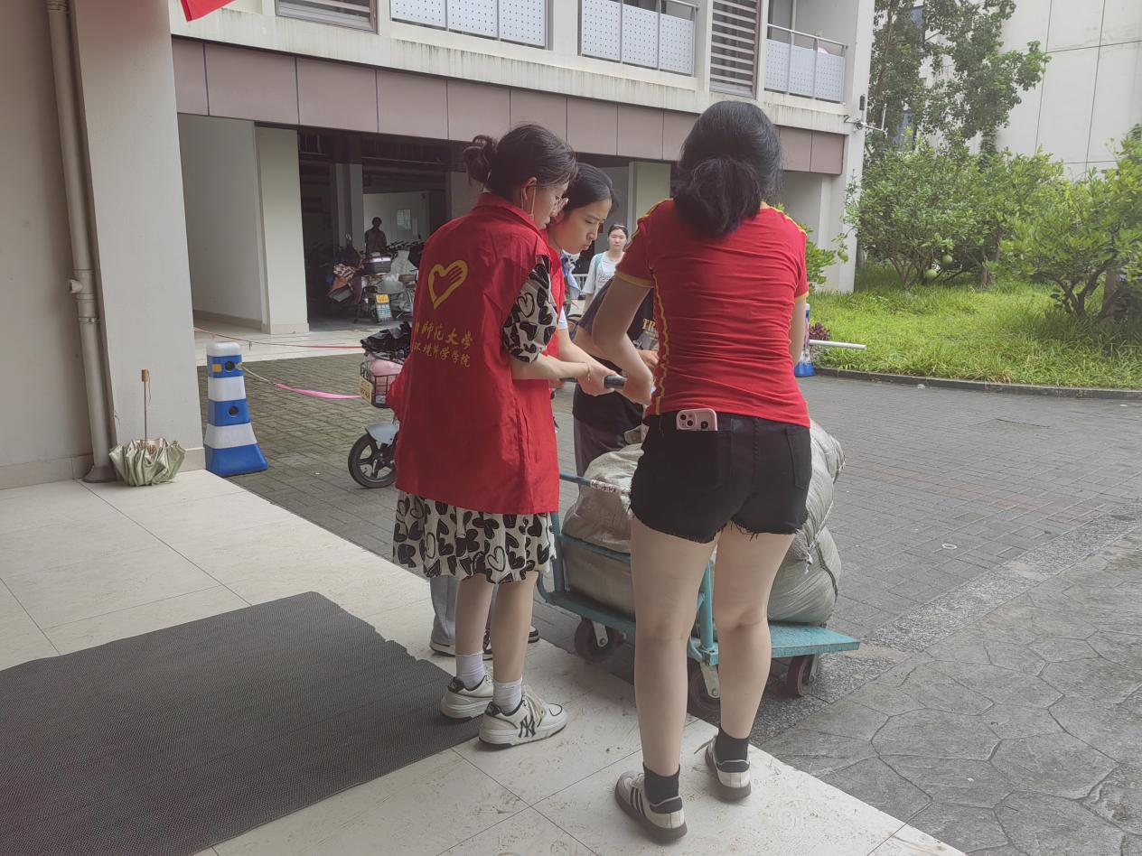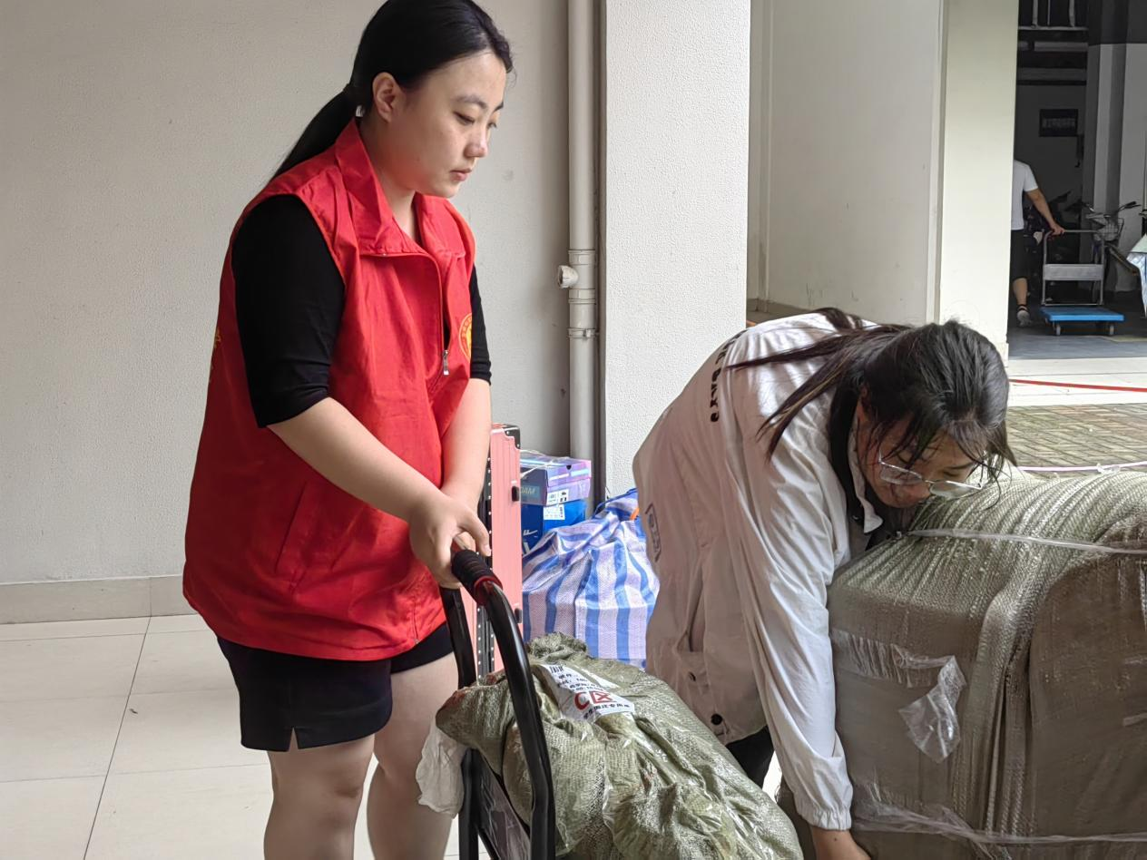 活动期间,志愿者们身着统一的志愿马甲,精神饱满,按时到达进学苑1号楼、精思苑1号楼入口处集合,大家分工明确,协作默契。有的负责行李运送,协助同学们将行李搬运至寝室大厅,或运送上楼;有的负责答疑解难,在寝室楼入口处为来往的同学或家长指路解难;还有的负责现场引导与秩序维护,确保搬迁过程的有序进行。
