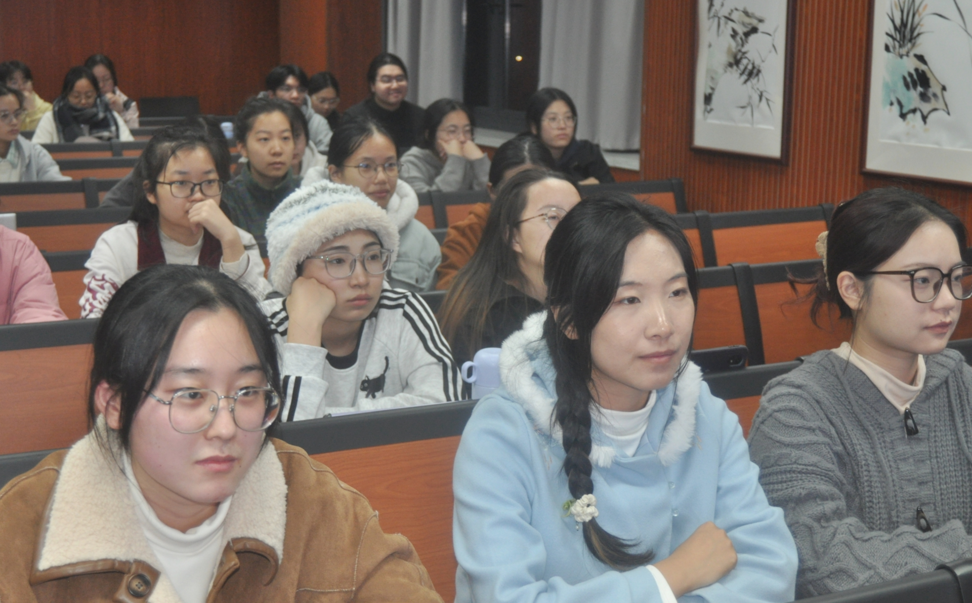 分享会上,25届推免保研成功的5位同学对自身备考经验和心得进行了分享,包括学习方法,科研竞赛,日常生活等多个方面,旨在帮助有保研或考研意向的同学更好地规划自己的未来。她们结合自身经历,从考研目标的确定、复习计划的制定与执行、专业课程的学习方法、公共课的备考要点,到心态调整与时间管理等方面进行了全面且深入的分享。整场分享会“干货”满满,她们以亲身经历为学弟学妹们答疑解惑。台下的同学们认真听讲并积极提问,与学姐们展开了热烈的互动交流,现场学习氛围浓厚。
