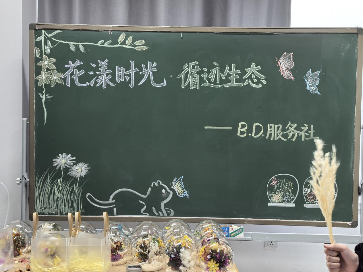 此次“花漾时光,循迹生态”生态瓶干花摆件制作活动不仅丰富了大家的课余生活,更让大家在亲手制作的过程中,深刻体会到生态保护的重要性。通过这种富有创意和趣味性的活动形式,生科院B.D.服务社成功地将环保理念传递给了每一位参与者,让大家在花漾时光中,循迹生态之美,用实际行动为绿色环保的宣传工作赋能助力。