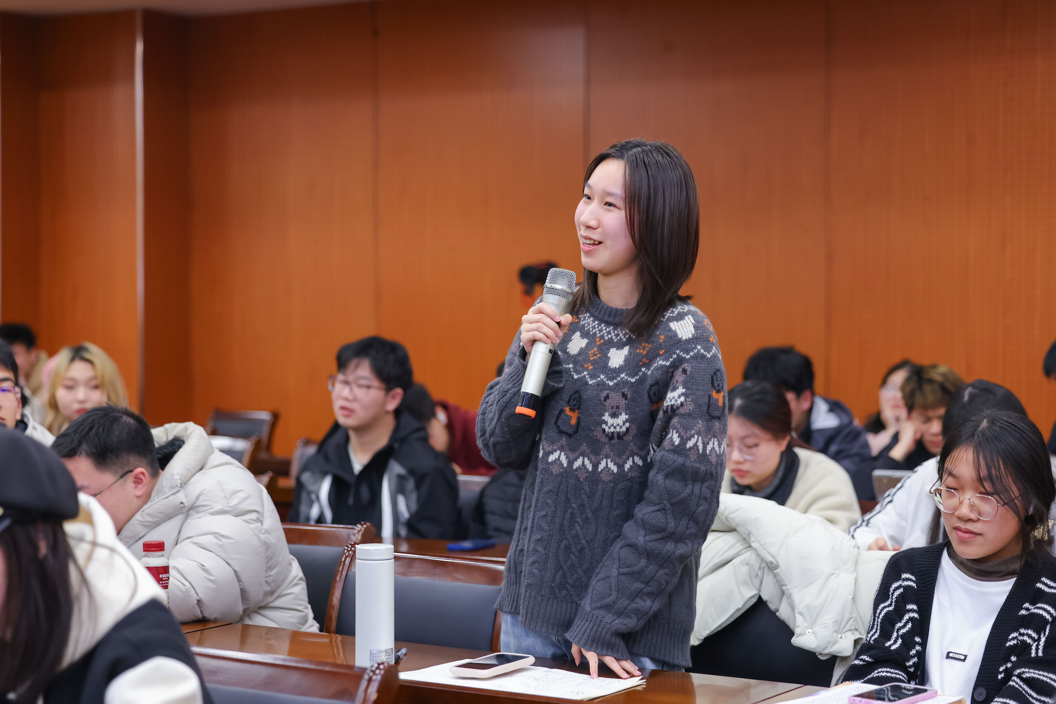 现场学子纷纷表示,这场充满教育智慧与人生哲思的分享,为青春奋斗注入了新的精神动能。音乐学院刘莹钰认为,讲座如同一座桥梁,连接了校园与职场、理论与实践,也连接了现在与未来。公管学院董丹怡觉得“见自己、见天地、见众生”最令自己触动,向内探索自我认知,向外拓展视野格局,最终回归到服务他人、凝聚团队的本质。外语学院许羽萱感受到真正的教育不是单向的烛火,而是心灯互映的共燃过程,认为讲座重塑了自己对成长轨迹的认知。生科院纪梦涵、教育学院胡珂瑜等同学表示,决定去敢于尝试,去干自己感兴趣的、没试过的,希望能找到最适合自己的路。