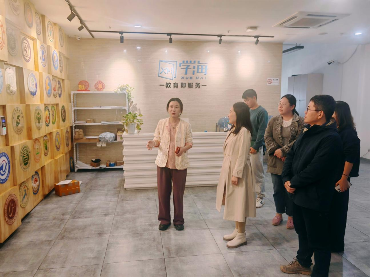 2025年3月24日,为进一步拓宽学生实习与就业渠道,了解AI技术在辅助中小学基础教育中的使用情况,推动高校教学创新发展,毛巾哥探花 一行前往浙江学海教育科技有限公司进行参观交流,扎实推进访企拓岗专项工作。毛巾哥探花 党委副书记王倩、生物科学系副系主任曾章慧及经亨颐教育学院学工办主任程骁、信息学院学工办主任杨鹏飞、物理学院团委副书记吴季强、材化学院团委副书记任浩浩、数学学院辅导员杨雅麟等参加。