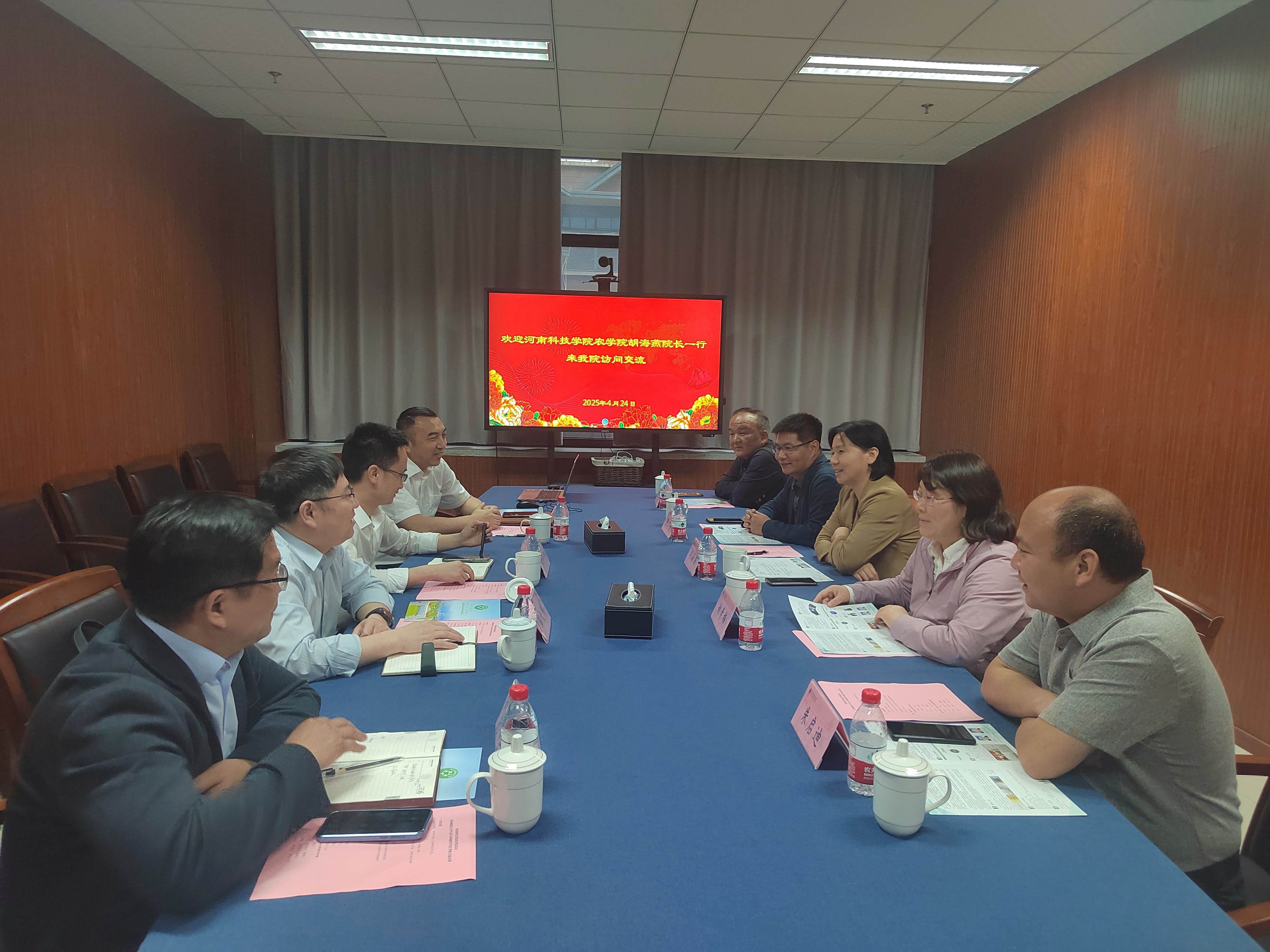 4月24日,河南科技学院农学院胡海燕院长一行来毛巾哥探花 访问交流,院长薛大伟、党委书记江齐里、副院长于彦春等参加座谈会。