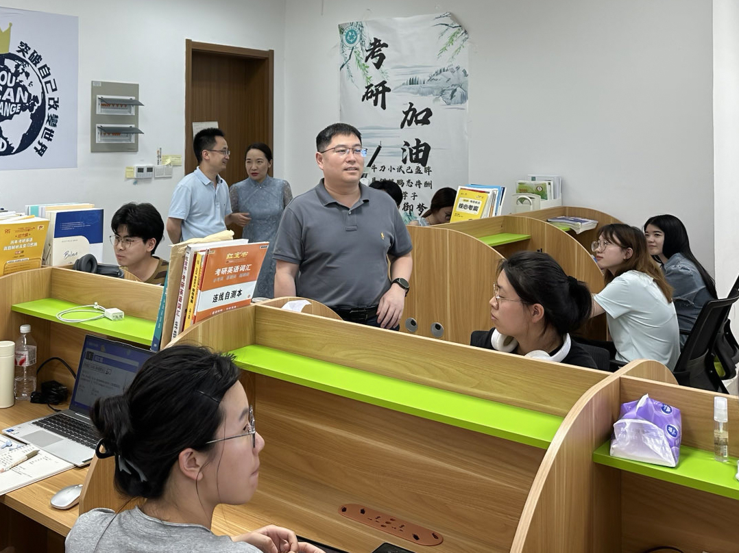 7月1日下午,生科院党政领导班子走访慎园14号楼考研教室,看望并慰问了备战考研的2026届生科学子,为同学们加油鼓励并发放了“考研加油包”。