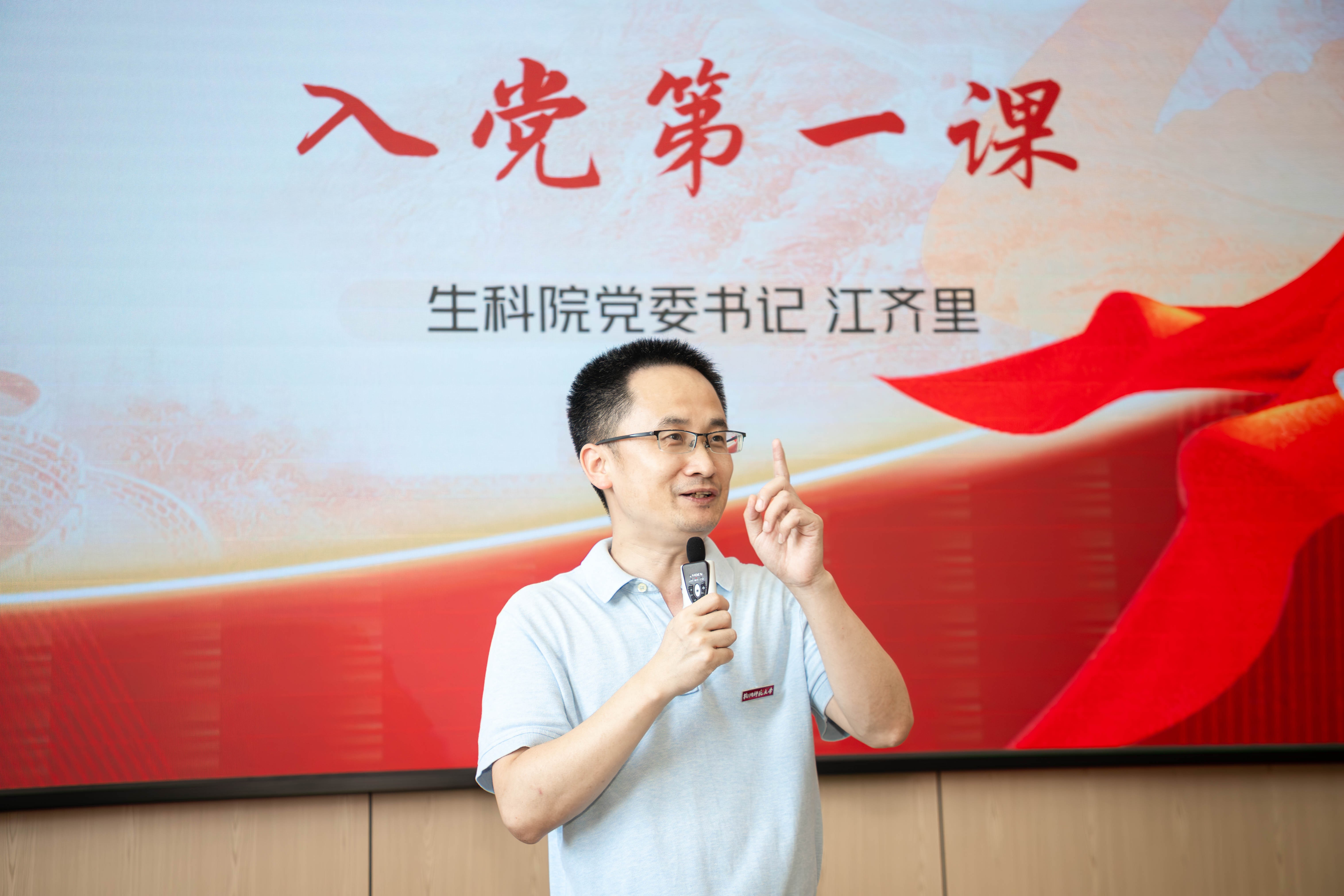 9月16日下午,生科院在下沙开展2025级新生始业教育之入党第一课。本次活动由生科院党委书记江齐里主讲,组织员梁良参加。