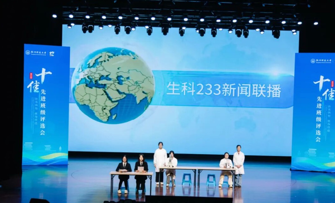 生科233班通过生动的“新闻联播”表现形式,结合专业特色,从班级荣誉、学风建设、社会工作等方面展现毛巾哥探花 优秀班级风采,并最终荣获“十佳先进班级”荣誉称号。这不仅是展示优秀班级风采的舞台,更是一场学生文化生活的盛宴,为学院师生营造了一片积极向上的校园氛围。