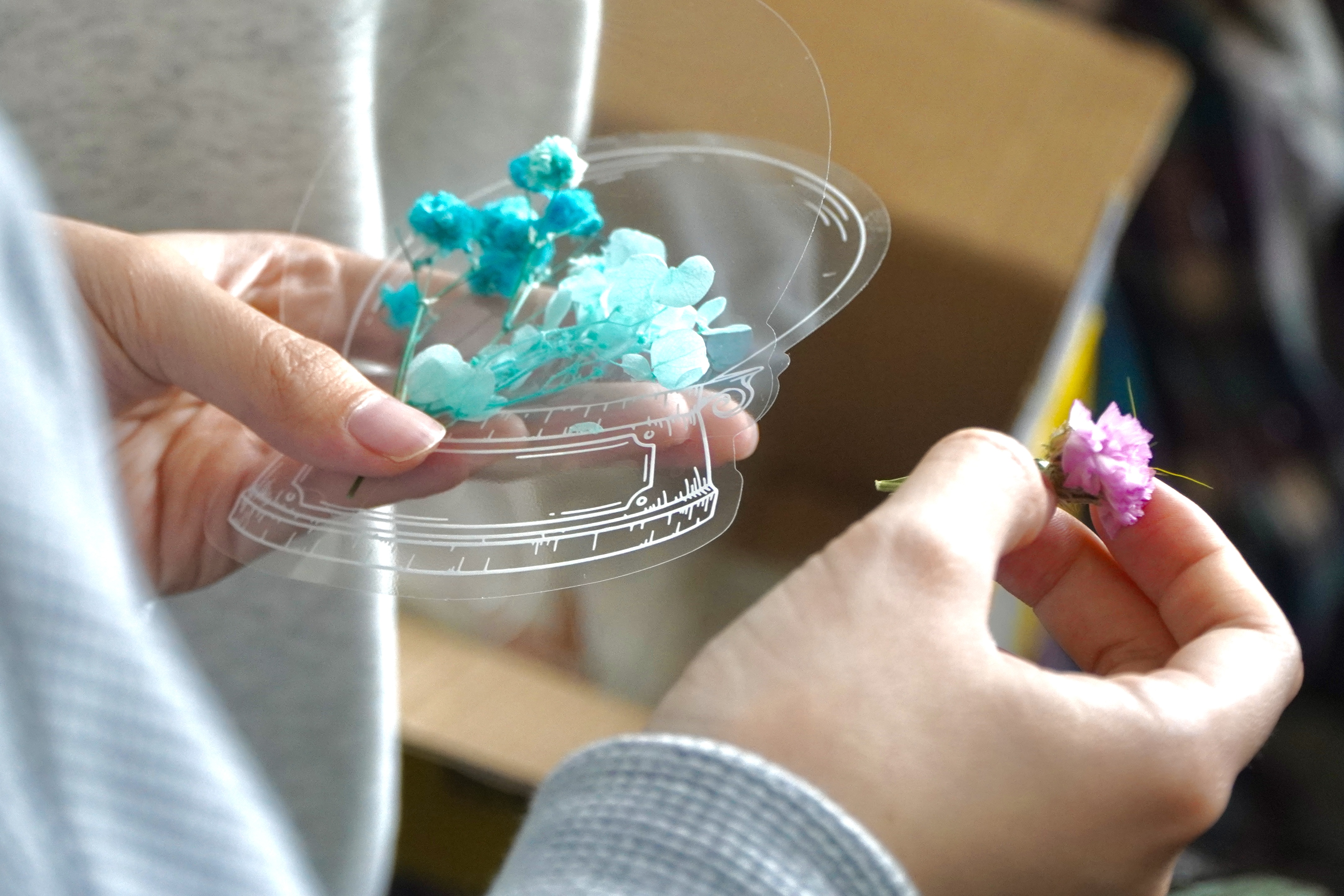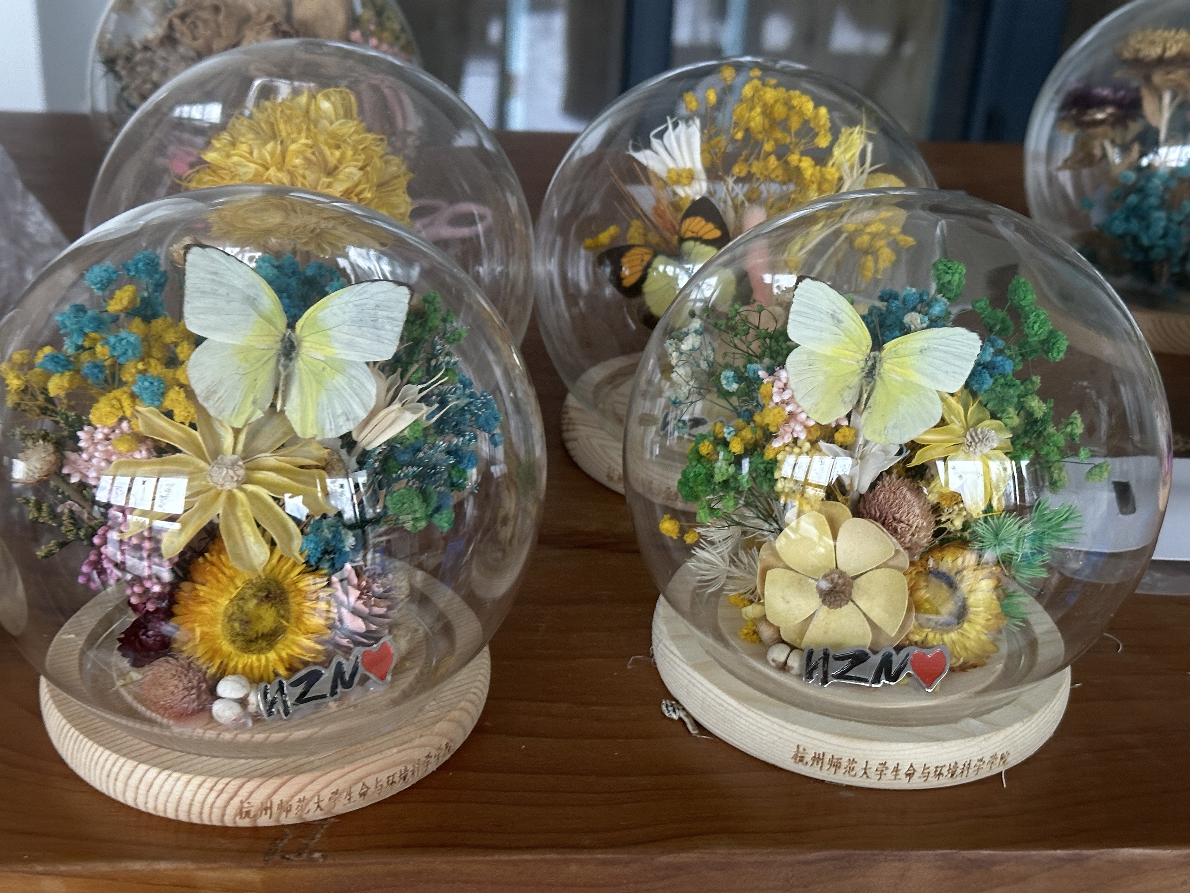 进入制作环节后,志愿者们指导操作,挑选喜欢的干花和摆件,搭配摆放位置,固定装饰细节。参与者们发挥创意,在透亮的球形瓶中搭配出专属景致,干花舒展、摆件灵动,一个个简约又别致的生态瓶很快成型。瓶内干花错落舒展,蝴蝶摆件似轻停花间,把自然美学与创意趣味装进了方寸之间。活动尾声,志愿者们用相机记录下这些独一无二的作品,记录下这场收官活动的温馨瞬间。