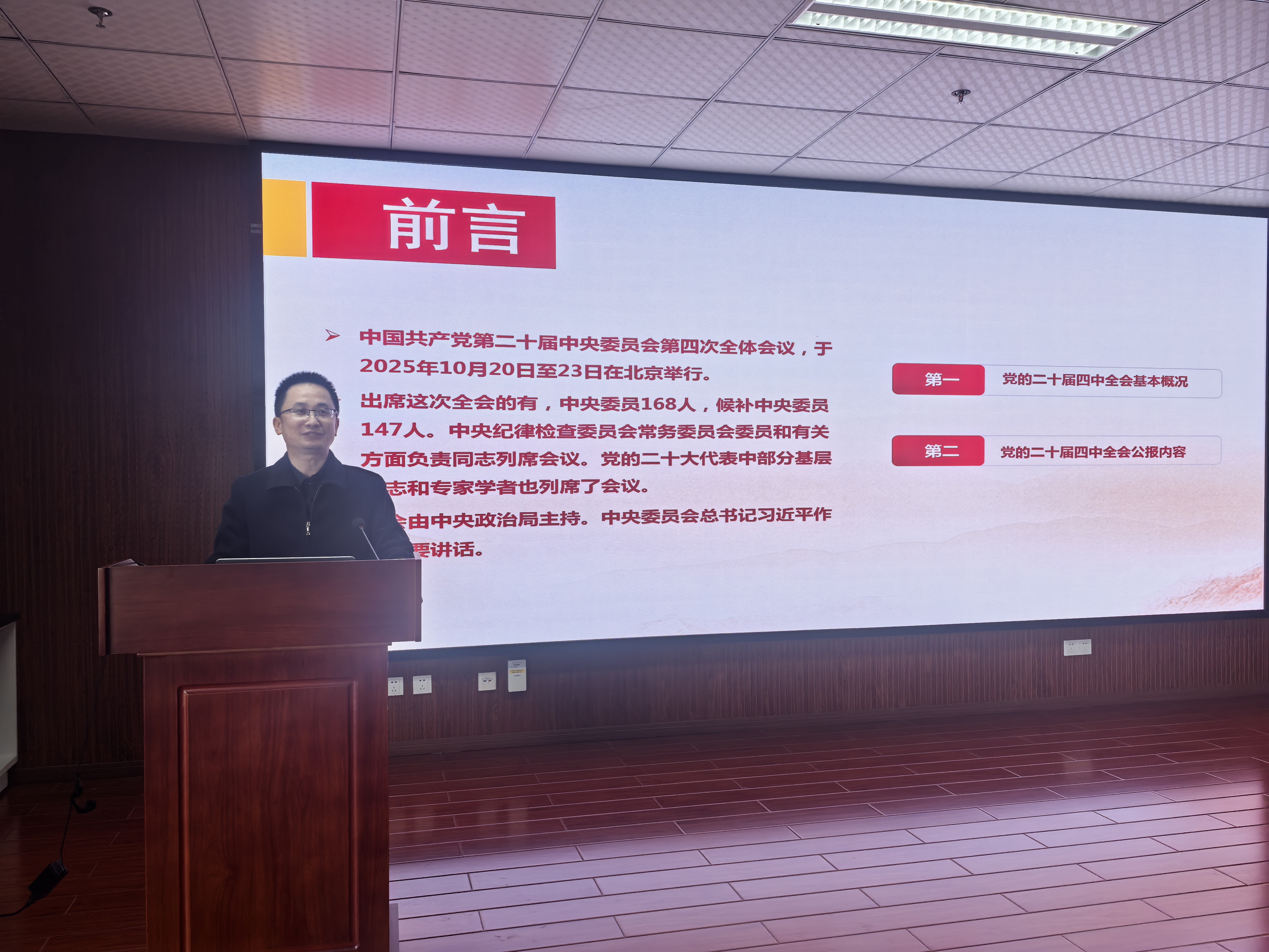江齐里以题为《开创中国式现代化新局面——党的二十届四中全会精神解读》,从党的二十届四中全会的重大意义,“十五五”时期经济社会发展的指导思想、主要目标、战略任务、重大举措,以及坚持和加强党的全面领导等方面对全会精神进行了深入阐释和系统解读,并结合学院发展实际,要求生科院教职工将学习贯彻全会精神与落实立德树人根本任务紧密结合,要与推动学院内涵式发展、学科建设、科学研究、教育教学、人才培养、社会服务等中心工作深度融合,谋划好学院“十五五”规划。
